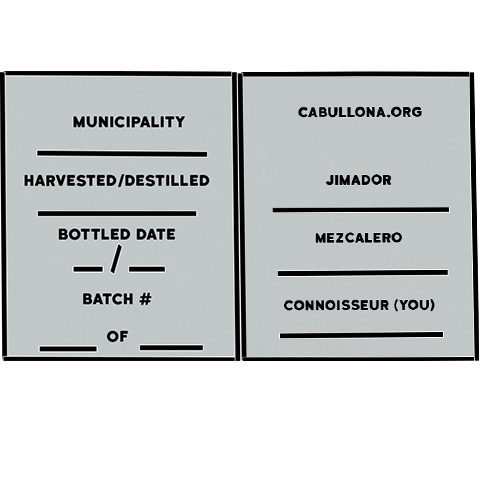 Los agaves deben haber crecido naturlamente usando el agua de lluvia que seria desperdiciada. Cada botella de Cabullona debe tener la localidad, fecha de cosecha y destilado, fecha de embotellamiento y numero de lote con la firma de cada mezcalero.